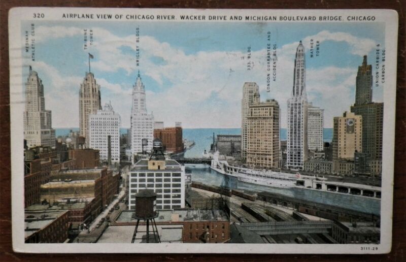 Title (ebay affiliate link): Airplane View Chicago River, Wacker Dr.& Michigan Blvd. Bridge Illinois Postcard