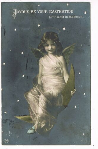 ANTIQUE EASTER Postcard "LITTLE MAID IN THE MOON