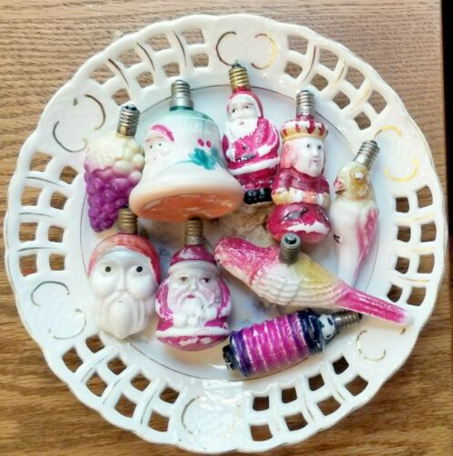 Title (ebay affiliate link): Fifth set of nine C-6 Miniature figural Milk Glass Lights, Japan. Not working
