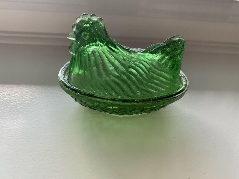 Title (ebay affiliate link): Green Hen Chicken Nest Trinket Box Dish Reproduction Depression Glass