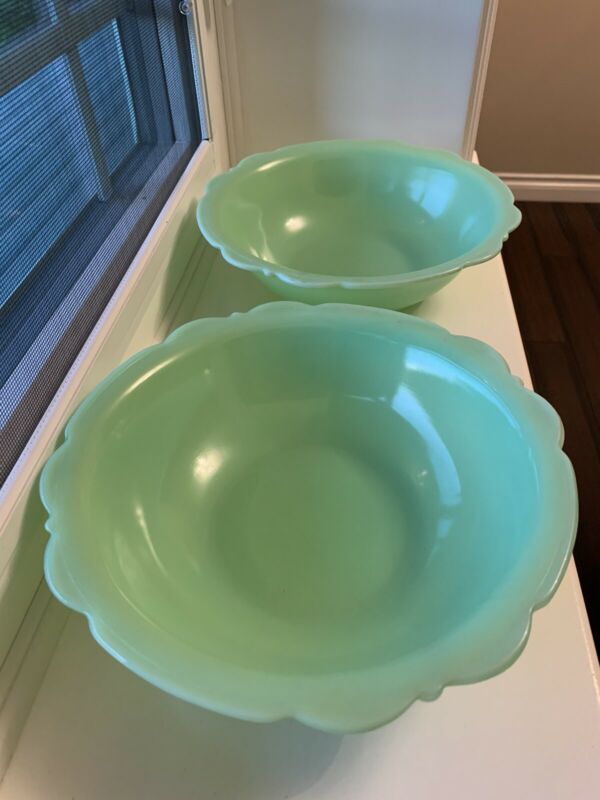 Title (ebay affiliate link): Set of two Jadeite green depression bowls ruffled wavy rim
