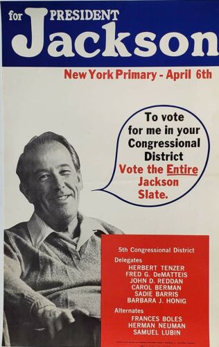 Title (ebay affiliate link): 1970s Scoop Jackson New York Primary Official Campaign Poster