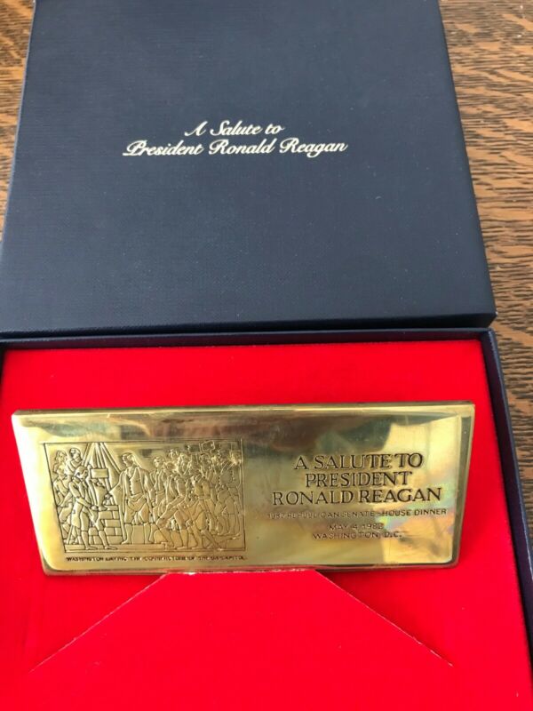 Title (ebay affiliate link): Salute to Pres. Ronald Reagan 1982. Commemorative paperweight with card