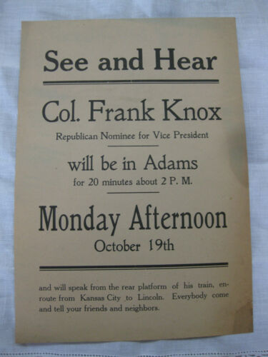 Title (ebay affiliate link): Orig 1936 FRANK KNOX Republican VICE PRESIDENT Whistlestop BROADSIDE Adams NE