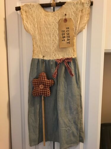 Title (ebay affiliate link): Primitive Dress Decor Vintage Blue Wool Burgundy Flower Sunday Best Tag