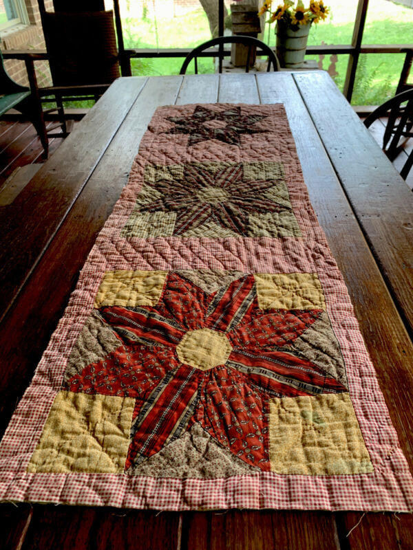 Title (ebay affiliate link): Early 44 in Runner Size Early Quilt Piece Brown Red Calico Primitive Textiles
