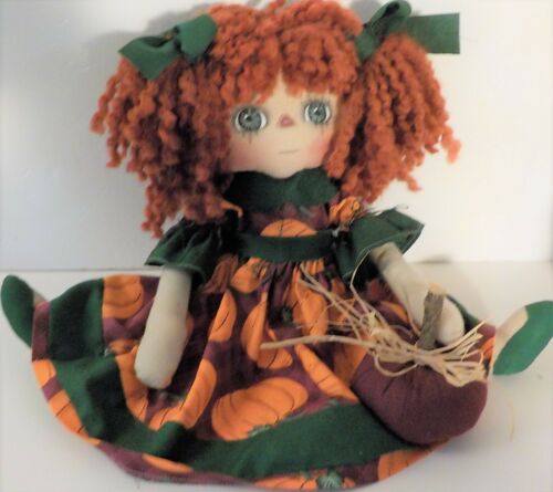 HM PRIM ART DOLL Raggedy Ann HALLOWEEN FALL Doll "REYNE" WITH Handmade PUMPKIN