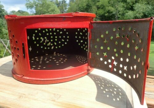 Title (ebay affiliate link): Unusual Round Punched Tin Wood Foot Warmer Rare Antique Primitive Hobo Folk Art