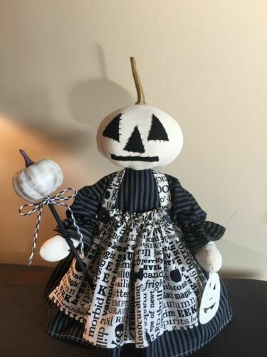 Title (ebay affiliate link): PRIMITIVE RAGGEDY FALL HALLOWEEN STANDING WHITE PUMPKIN DOLL