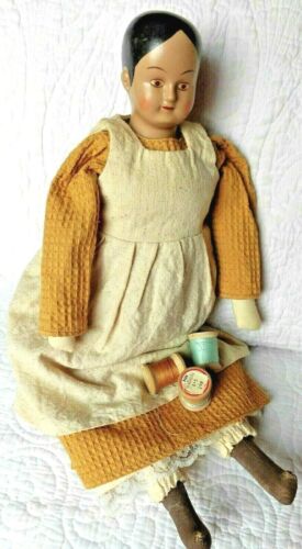 Title (ebay affiliate link): Old-fashioned Primitive style Cloth. painted head DOLL w/spools thread 17 inches