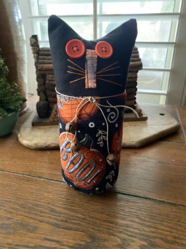 Title (ebay affiliate link): Primitive Stitchery Black Kitty Cat Halloween Autumn Shelf Sitter Ichabod