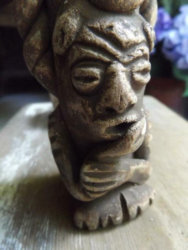 COOL Rustic Primitive Vintage Hand Made Pottery Flute Recorder Creepy Man Design