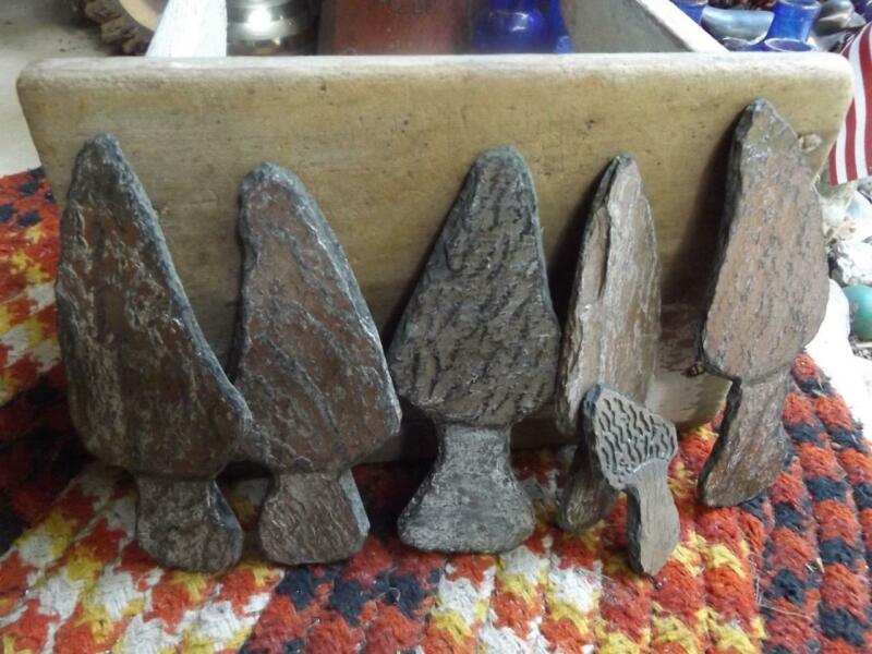 6 VERY Cool Vintage Folk Art Cut Slate Pieces Trees or Mushrooms Garden Decor