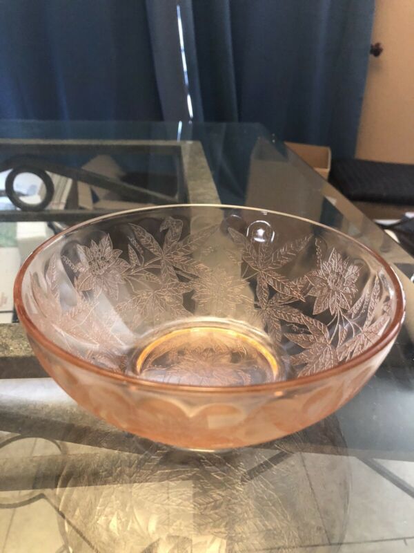 Title (ebay affiliate link): Jeannette PINK Poinsettia / Floral Depression 7.5" Glass Salad Bowl