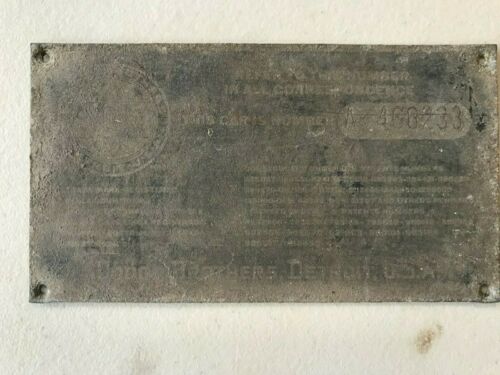 DODGE BROTHERS CAR DATA PLATE WITH SERIAL NUMBER