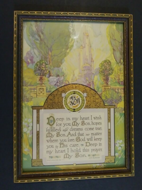 Title (ebay affiliate link): 1924 A Buzza Motto Print. "My Son" with gold accents. Framed with issues.