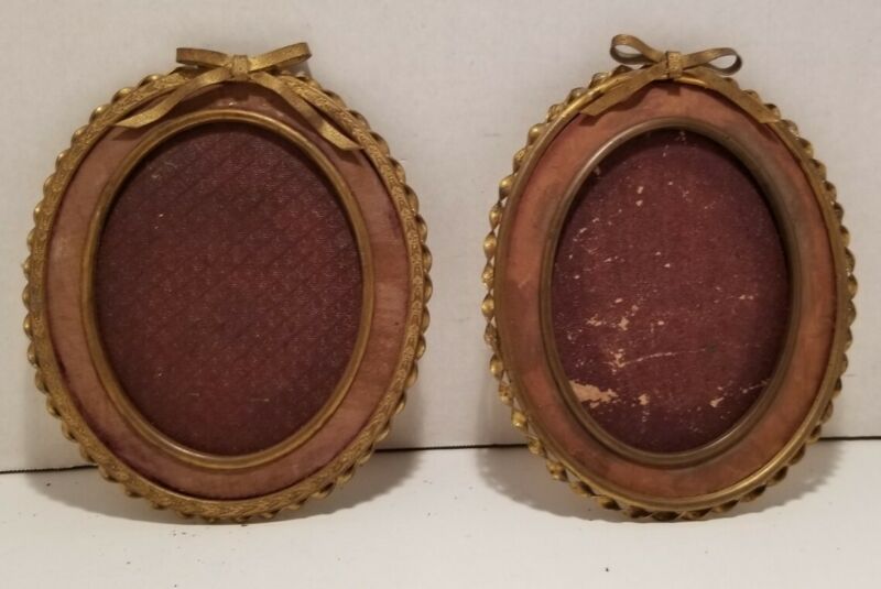 2 Gilt Bronze Oval Miniature Picture Frames NR