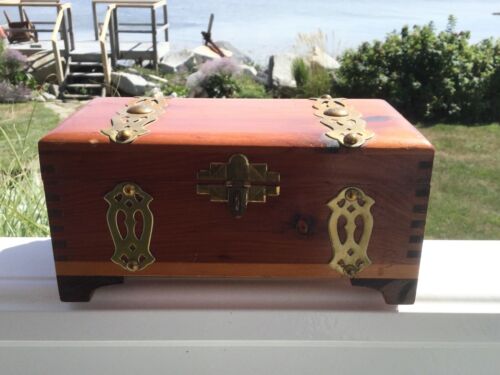 Vintage Mini Cedar Trinket Box Chest w/ Brass Details