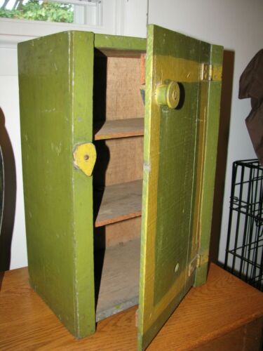 Title (ebay affiliate link): SMALL PRIMITIVE ONE DOOR WOODEN CABINET in Bitter sweet Apple Green Paint 17 1/2