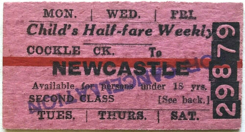 Title (ebay affiliate link): NSWR Ticket - COCKLE CREEK to NEWCASTLE - Child''s Half Fare 2nd Class Weekly