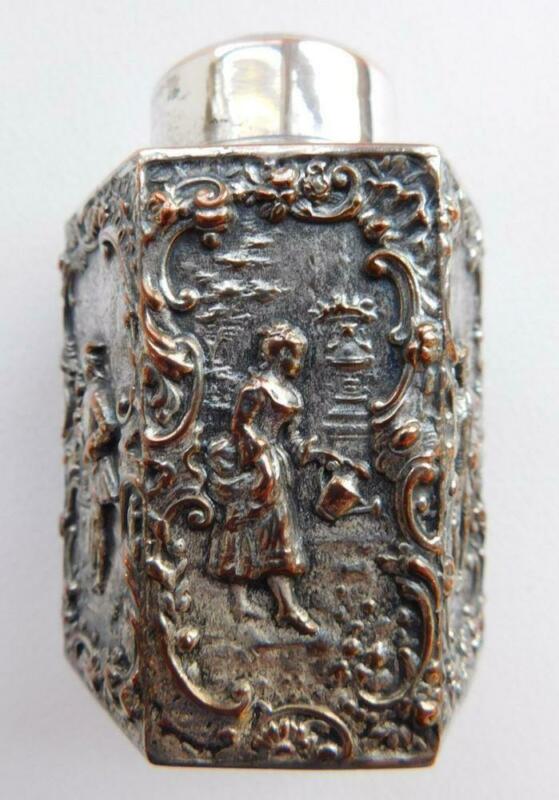 Gorgeous Miniature Dutch Tea Caddy Silver Over Copper 1900s