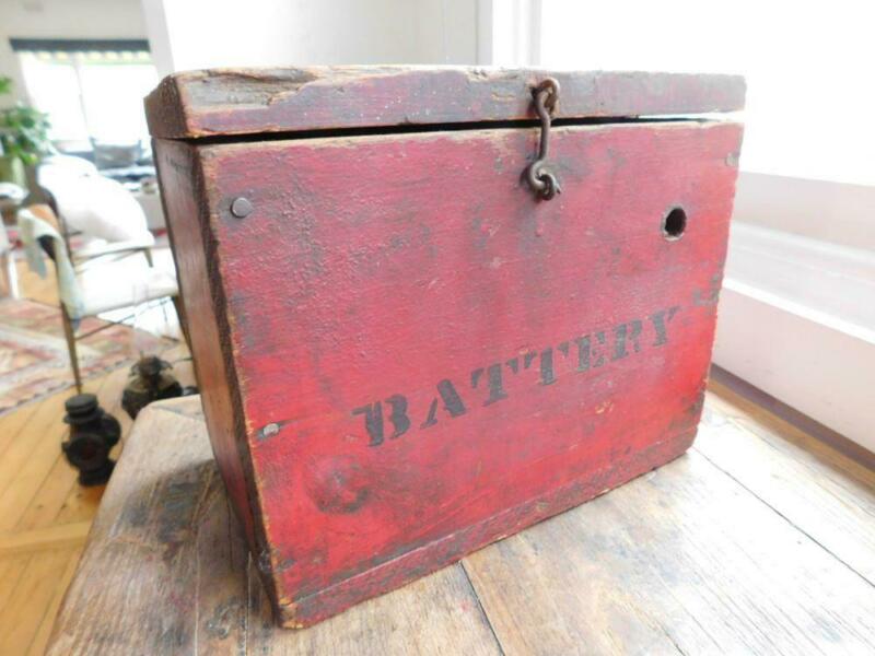 Wonderful Sturdy Antique Wooden Battery Box Utility Chest Industrial Chic 1900s