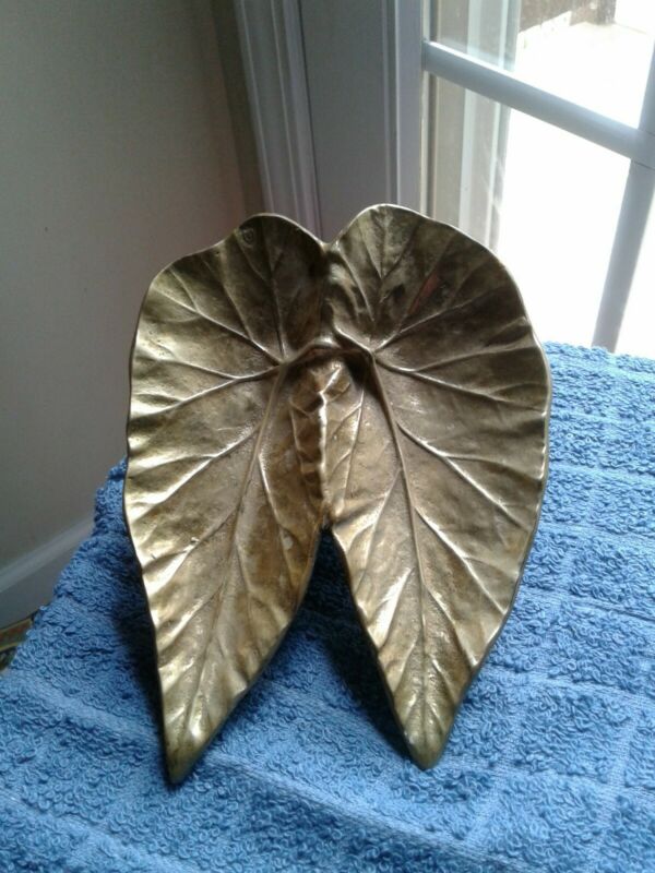 Vintage Brass Leaf Dish Tray Virginia Metal Crafters Angel Wing Begonia