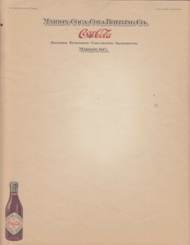 Title (ebay affiliate link): THE MARION COCA-COLA BOTTLING CO. LETTERHEAD UNUSED NOT DATED 1910 - 1919