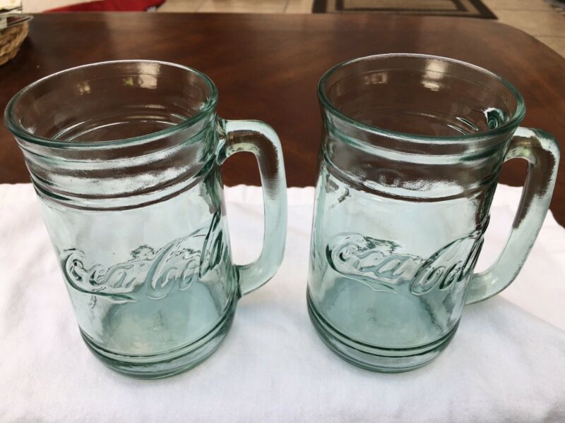 Title (ebay affiliate link): 2 Vintage Coca-Cola Coke Green Heavy Glass Embossed Mugs with Handles