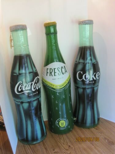 Title (ebay affiliate link): Vintage Two Inflated Coca Cola Classic Coke Bottles & One Fresca bottle 28" Tall