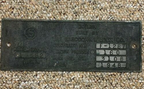 Title (ebay affiliate link): Babcock & Wilcox Machinery Sign - Steam Boiler 1948 - Bronze