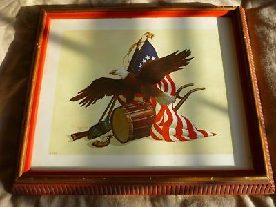 American Eagle Colonial Print Drum Flag Musket & Frame