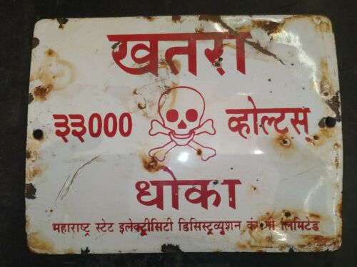 VINTAGE PORCELAIN ENAMEL SIGN DANGER 33000 VOLTS REGIONAL LANGUAGE BIG 8 x 10