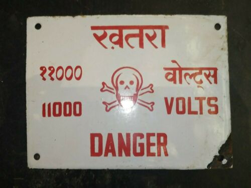 VINTAGE PORCELAIN ENAMEL SIGN DANGER 11000 VOLTS RARE