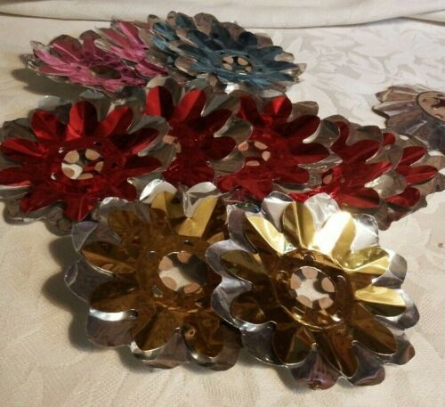 Title (ebay affiliate link): 13 VINTAGE CHRISTMAS LIGHT REFLECTORS, RED, BLUE, PINK, GOLD DOUBLE LAYER