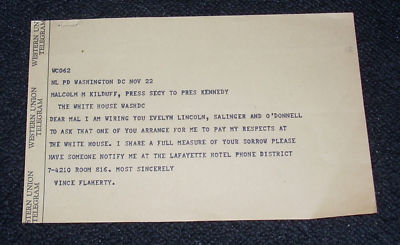 Original Telegram Sent to White House Assassination JFK