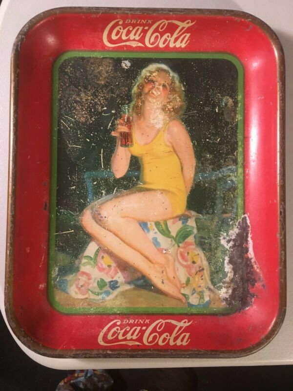 Title (ebay affiliate link): Vintage 1932 Coca-Cola Coke Metal Serving Tray Girl in Yellow Bathing Suit