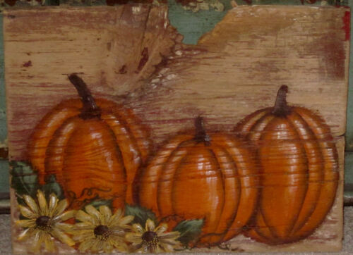 Title (ebay affiliate link): *~*PRIMITIVE*~* HP FOLK ART PUMPKINS *~* SUNFLOWERS *~* OLD RECLAIMED BARN WOOD