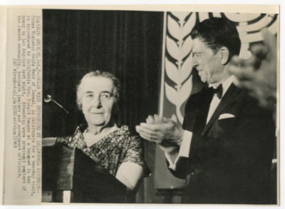 Title (ebay affiliate link): 1969 vintage wire press Golda Meir & Gov. Ronald Reagan