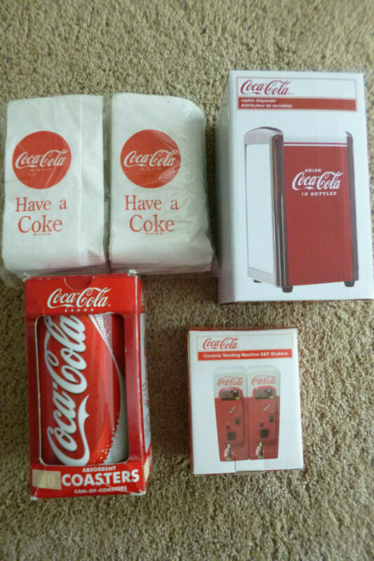 Title (ebay affiliate link): Coca-Cola Napkin Server, Napkins, Vending Machine Salt & Pepper Shakers,Coasters