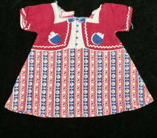 Title (ebay affiliate link): Vintage Antique Baby DOLL Dress 1940s Printed Dress Cranberry Blue Estate Find