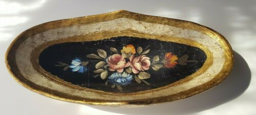Title (ebay affiliate link): Antique Italian Florentine Wood Tole Bowl Hand Painted Flowers GILDED