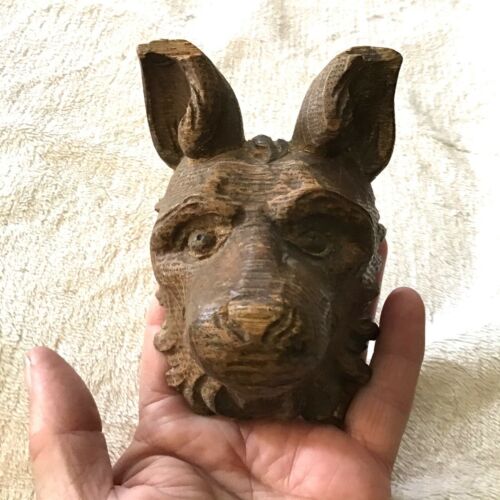Beautifully Hand Carved Antique Wood Wooden Dog Head, Wolfs Head