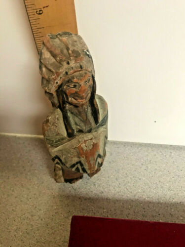 Title (ebay affiliate link): Vintage CARVED folk art WOOD POLYCHROME Dry Paint FIGURE Chief PRIMITIVE