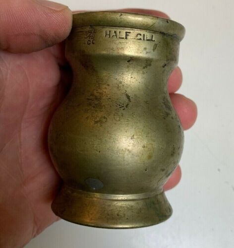 Title (ebay affiliate link): William lV~Antique English 1830s half gill Bronze~Pewter weight Measure cup