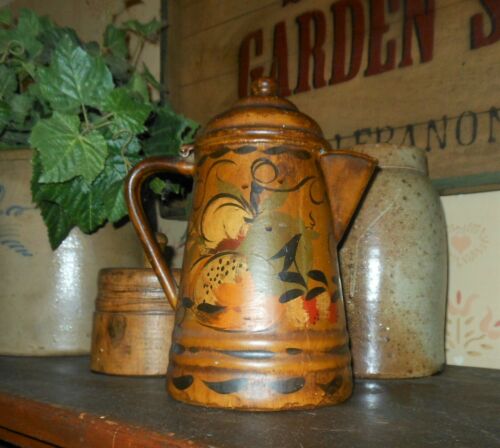 Jean Dewey Folk Art Artist signed Metal Toleware Coffee Pot 9 1/2"~Original