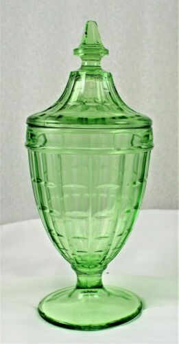 Title (ebay affiliate link): Hazel-Atlas Colonial Block Green Uranium Covered Footed Candy Dish