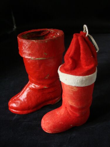 Title (ebay affiliate link): 2 Vintage Santa Boots Paper Mache Christmas Candy Container - GERMANY