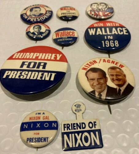 Title (ebay affiliate link): Lot of 10 Candidates for President Pinback Buttons Nixon, Humphrey, Wallace 1968
