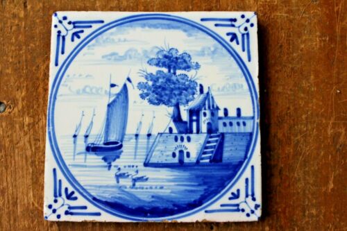 Antique Sailing 5 Ships Boats Delft tin glazed 17th century TILE